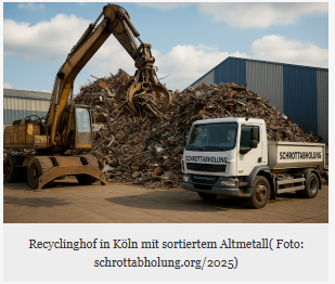 Köln wächst, modernisiert sich und produziert dabei zwangsläufig Altmetall. Durch professionelle Schrottabholung wird dieses Material wieder dem Produktionskreislauf zugeführt. Schrottabholung.org zeigt, wie moderne Kreislaufwirtschaft in einer Großstadt funktioniert – effizient,nachhaltig und ohne bürokratische Hürden.