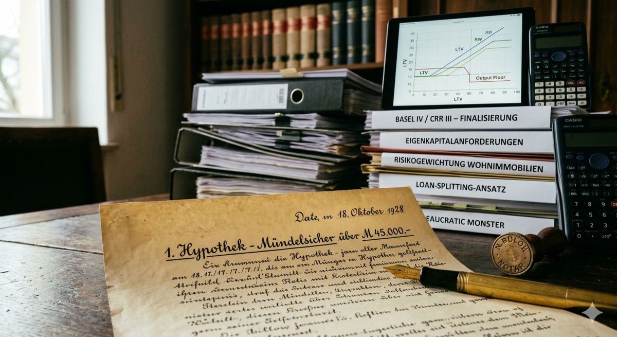 Wer heute in Deutschland ein Haus finanzieren will, trifft auf ein Kürzel, das wie eine Drohung über den Bankfluren schwebt: Basel IV. Die neuen Eigenkapitalregeln für Banken, die seit 2025 schrittweise in Kraft getreten sind, sollen das Finanzsystem\“sicherer\“machen. Doch wer seit Jahrzehnten im Immobiliengeschäft tätig ist, kann über die vermeintlichen Innovationen der Aufseher nur bitter lachen. Denn was uns heute als hochkomplexes Risikomanagement verkauft wird, ist im Kern nichts anderes als die Rückkehr zu Regeln aus der Kaiserzeit – nur deutlich teurer und mit einer Überdosis Bürokratie garniert.