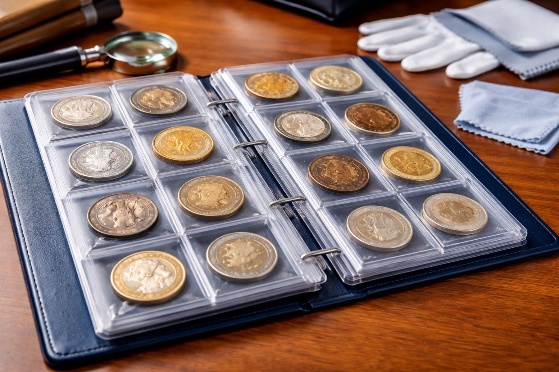– Münzkapseln: Diese schützen Münzen vor Kratzern, Feuchtigkeit und Schmutz. Besonders für hochwertige Sammlermünzen sind Kapseln unerlässlich, da sie verhindern, dass die Münze mit der Luft in Berührung kommt. Hochwertige Kapseln sind aus kratzfestem Acryl gefertigt und bieteneine dichte Versiegelung. Sie sind in verschiedenen Größen erhältlich und sollten genau an die Maße der Münze angepasst sein, um Bewegungen und damit verbundene Mikrokratzer zu vermeiden.