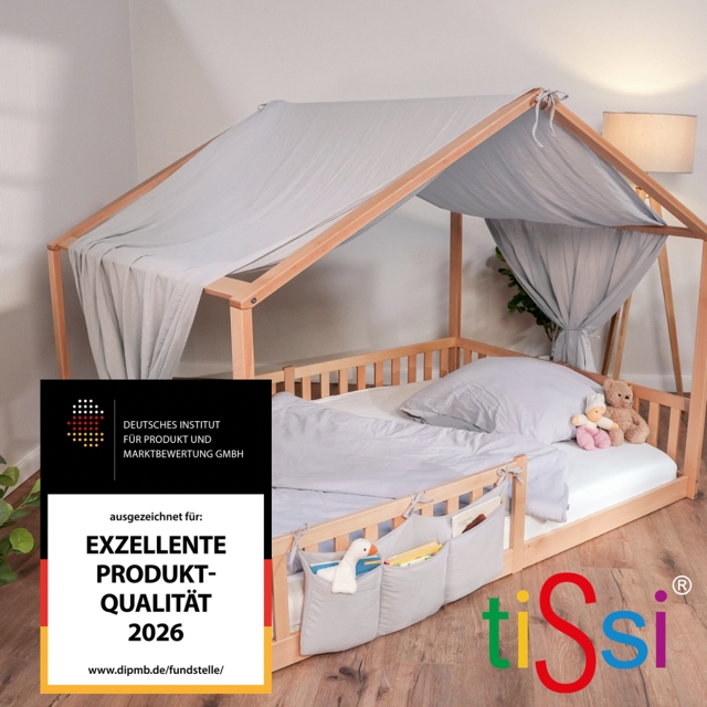 Das Deutsche Institut für Produkt und Marktbewertung GmbH hat das Bodenbett Enno der Kindermöbel-Marke tiSsi mit dem Qualitätssiegel\“Exzellente Produktqualität\“ausgezeichnet. Damit würdigt das Institut die hohe Verarbeitungsqualität, die durchdachte Konstruktion sowie die besonderen Ansprüche an Sicherheit und Langlebigkeit des Produkts.