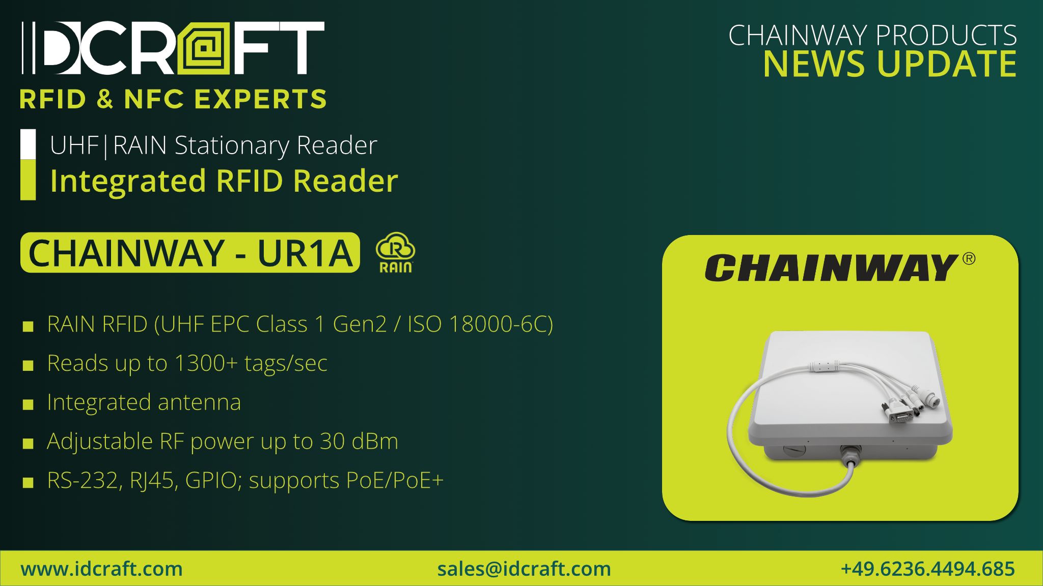 Mit dem CHAINWAY UR1A steht Unternehmen ein moderner UHF RFID Long Range Reader zur Verfügung, der speziell für industrielle Anwendungen entwickelt wurde und hohe Lesegeschwindigkeit, robuste Bauweise und flexible Integrationsmöglichkeiten in einem kompakten Gerät vereint.