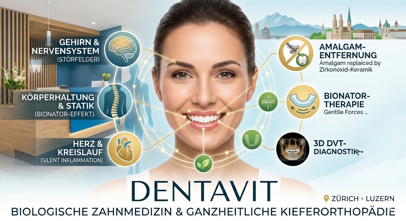 Ein zentraler Pfeiler des Konzepts ist die Verwendung von ausschliesslich biokompatiblen Werkstoffen. Metalle im Mund können wie kleine Antennen wirken oder galvanische Ströme erzeugen, die das Nervensystem irritieren. Deshalb setzt Dentavit auf metallfreie Lösungen aus Zirkonoxid-Keramik, die nicht nur ästhetisch überzeugen, sondern vom Körper wie körpereigenes Gewebe akzeptiert werden.