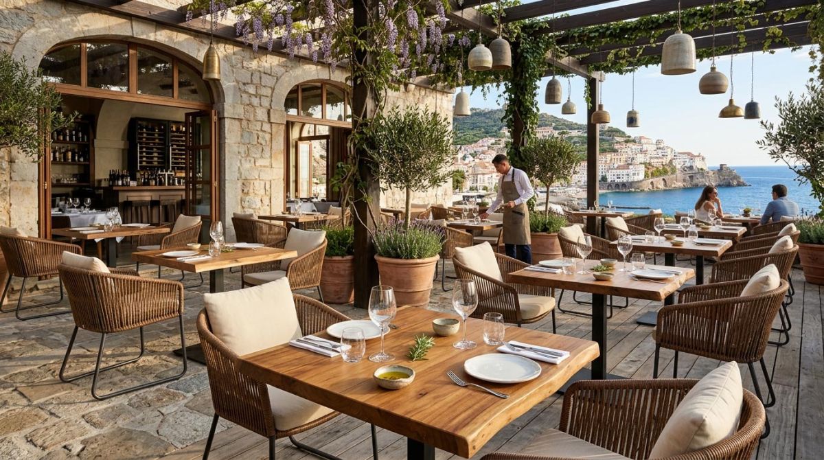 * Den Außenbereich mit wetterfesten Terrassenmöbeln aktivieren und visuell an das Innenraumkonzept anpassen – so entsteht mehr Kapazität ohne Umbaukosten.