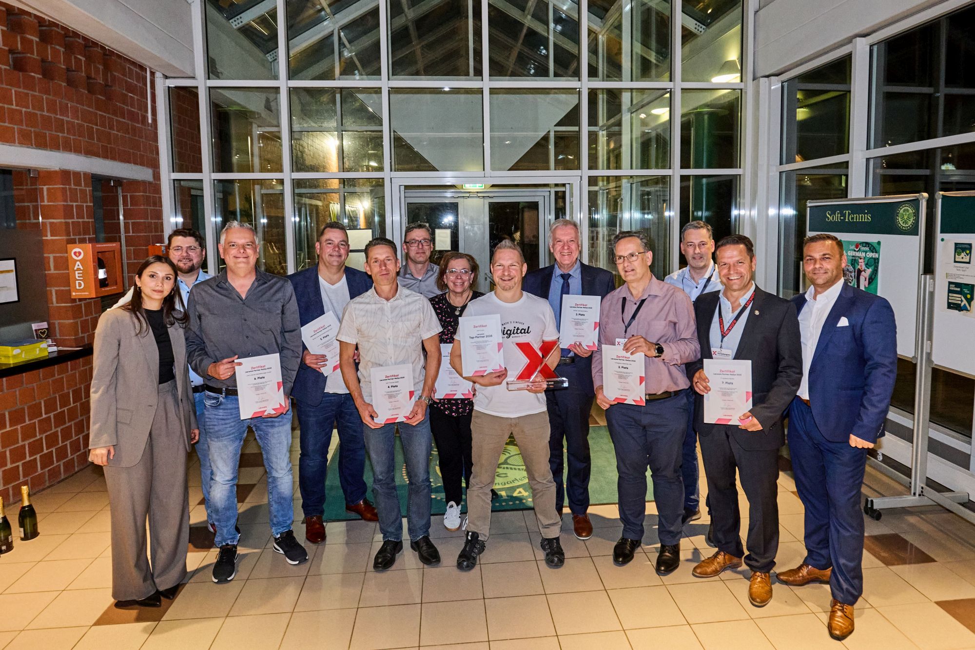 Und das sind die Lexware Top 10 Partner 2025: (vlnr) Marina Wallner (Lexware), Zlatko Zdravkovic (Lexware), Marcus Sommer (CMO Internet Dienstleistungen GmbH), Oliver Menzel (BOME GmbH), Thomas Geisler (DOT), Dirk Andreas (@ndreas EDV-Service), Christiane Hartramf (IT&Service Hartramf), Roland Berger (MXP GmbH), Frank Richter (Richter Learning Systems), Alexander Dilly (Erfolgsbüro Alexander Dilly), Frank Behrens (SGB-IT OHG), Sten Alscher (IT Systeme Alscher), Attila Mekker (Lexware)