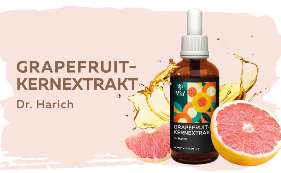 Das Vinplus Grapefruitkernextrakt wird im Vergleich explizit als hochdosiertes Konzentrat imÖl beschrieben, das dem Originalrezept folgt und damit die typischen Eigenschaften eines Dr.-Harich-Grapefruitkernextrakts widerspiegelt.
