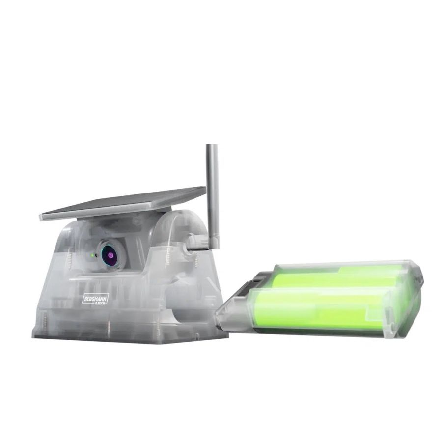 Die Kamera wird akkubetrieben und zusätzlich per Solarzelle automatisch nachgeladen – ideal für den mobilen Dauereinsatz ohne externe Stromzufuhr. Ein besonderes Merkmal ist der patentierte Aufbau mit austauschbarem Akku, der auch bei intensiver Nutzung eine lange Systemlebensdauer sicherstellt.