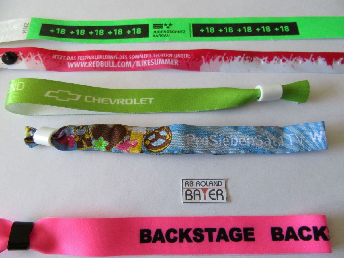 Kontrollbänder aus Stoff, Tyvek (papierähnlichem Material ) und Vinyl vom deutschen Spezial – Fachhandel. Qualitätsprodukte auf hochwertigem Niveau. Langlebig und zu attraktivem Preis-Leistungsverhältnis. RB ROLAND BAYER ist seit über 28 Jahren , der deutsche Spezialist für die Ausstattungvon Lifestyle Events , Veranstaltungen und Personenkennzeichnungen . Die Kontrollbänder können in vielen Farben, Ausführungen und Varianten produziert werden. Diese können zusätzlich mit Symbolen mit Hilfe der Entwertungszangen/ Kontrollzangen versehen werden. Symbole sind zum Beispiel: Dreieck, Rundloch, Quadrat, Stern und Achteck. Die Kontrollzange mit Auffangbehälter ist ein umweltfreundlicher Artikel, ausgestanzte Teile werden im Auffangbehälter gesammelt und können anschließend entsorgt werden. Die Stoffarmbänder sind mit Nummerierung und Sicherheitsmerkmalenproduzierbar . Zum Beispiel können Gruppeneinteilungen vorgenommen werden , wie : Backstage, Artist, Worker, Crew, Helfer, Caterer, Staff, Belieferer, Verkauf, Cleaner, VIP . Organisation, Mitarbeiter . Feuerwehr, Polizei, San , Security und so weiter , es gibt viele Möglichkeiten . RB ROLAND BAYER kann im Rahmen einer Projektbetreuung Erfassung und Ausstattung mit vielen weiteren Kontrollartikeln Veranstaltungen und besondere Ereignisse komplett mit einer\“Gesamterfassung\“ausstatten. Schnelle Lieferzeiten – individuell bedruckte Kontrollbänder ab einem Werktag – ermöglichen sehr schnelle Lieferzeiten. Der Fachhändler RB ROLAND BAYER ist ein Versandhandel und betreibt kein Ladengeschäft , daher können Produktionen und Verkauf rund um die Uhr getätigt werden 24/7. RB ROLAND BAYER berät und erteilt Infos / Hilfen bei der Erstellung einer Druckvorlage gerne am Telefon oder online.