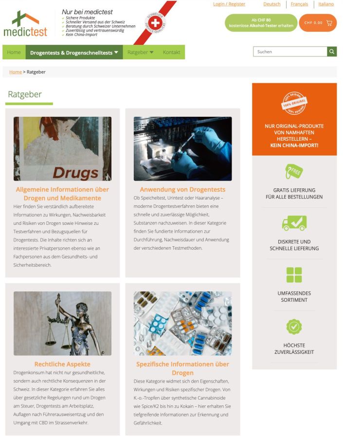 Grösster Online-Shop für Drogen-Diagnostik in der Schweiz