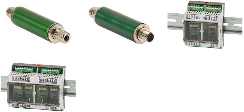 Es können unterschiedliche Gehäusevarianten gewählt werden. Für den Einsatz im Feld steht die IP67-Variante mit PG-Verschraubung oder alternativ mit ausgangsseitigem M12-Steckverbinder zur Verfügung. Die steckbare Version ermöglicht eine einfache, schnelle Montage und Demontage. Da derSensor fest mit dem Messverstärker verbunden ist, kann die Messkette als Ganzes montiert werden. Für die Montage des Messverstärkers im Schaltschrank empfehlen wir die 2-Kanal, 3-Kanal oder 4-Kanal Hutschienen-Version. Für den Einsatz im Labor oder als OEM-Produkt kann die reine Platinen-Version gewählt werden.