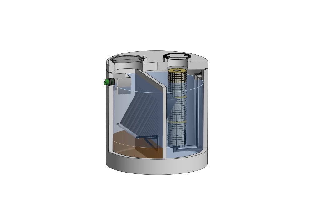 Bei Anlagen zur Behandlung von Niederschlagswasser vor der Versickerung steht besonders der stoffliche Aspekt im Vordergrund, damit das Grundwasser als Trinkwasserquelle dauerhaft erhalten bleibt. Hier fordert das neue Arbeitsblatt deshalb, dass abhängig von der Beurteilung der Verschmutzung der Sammelflächen Nachweise der Schadstoffreduktion für die Parameter\“AFS63\“und\“gelöste Stoffe\“erbracht werden. Die erforderlichen Wirkungsgrade beziehen sich auf die drei im Arbeitsblatt definierten Flächenkategorien, während in der Praxis jedoch häufig die Anforderung besteht, eine geeignete Anlage für eine Mischfläche mit unterschiedlichen Belastungskategorien zu definieren. Die neue Kombinationsanlage wurde speziell für diesen Anwendungsfall entwickelt und ermöglicht eineobjektspezifische Produktauswahl über die Bemessung der Oberflächenbeschickung für AFS63 (Lamellenpakete) und die eingesetzte Granulatmenge für gelöste Stoffe.