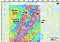 Die Auswahl der Bohrziele wird durch gut ausgebildete Magnetfeldstrukturen begünstigt, zu denen eine markante ringförmige Anomalie mit hohen Magnetfeldwerten sowie mehrere innerhalb liegende Zonen mit niedrigen Magnetfeldwerten zählen. Letztere werden als abgegrenzte Intrusionszentren gedeutet, die entlang eines von Nordosten nach Südwesten verlaufenden Entwicklungszugs angeordnet sind. Der Bohrplan sieht vorrangig die Exploration des nördlichen Intrusionszentrums vor, von der sich das Unternehmen eine zuverlässige Ersterkundung eines ausgedehnteren Systems verspricht.