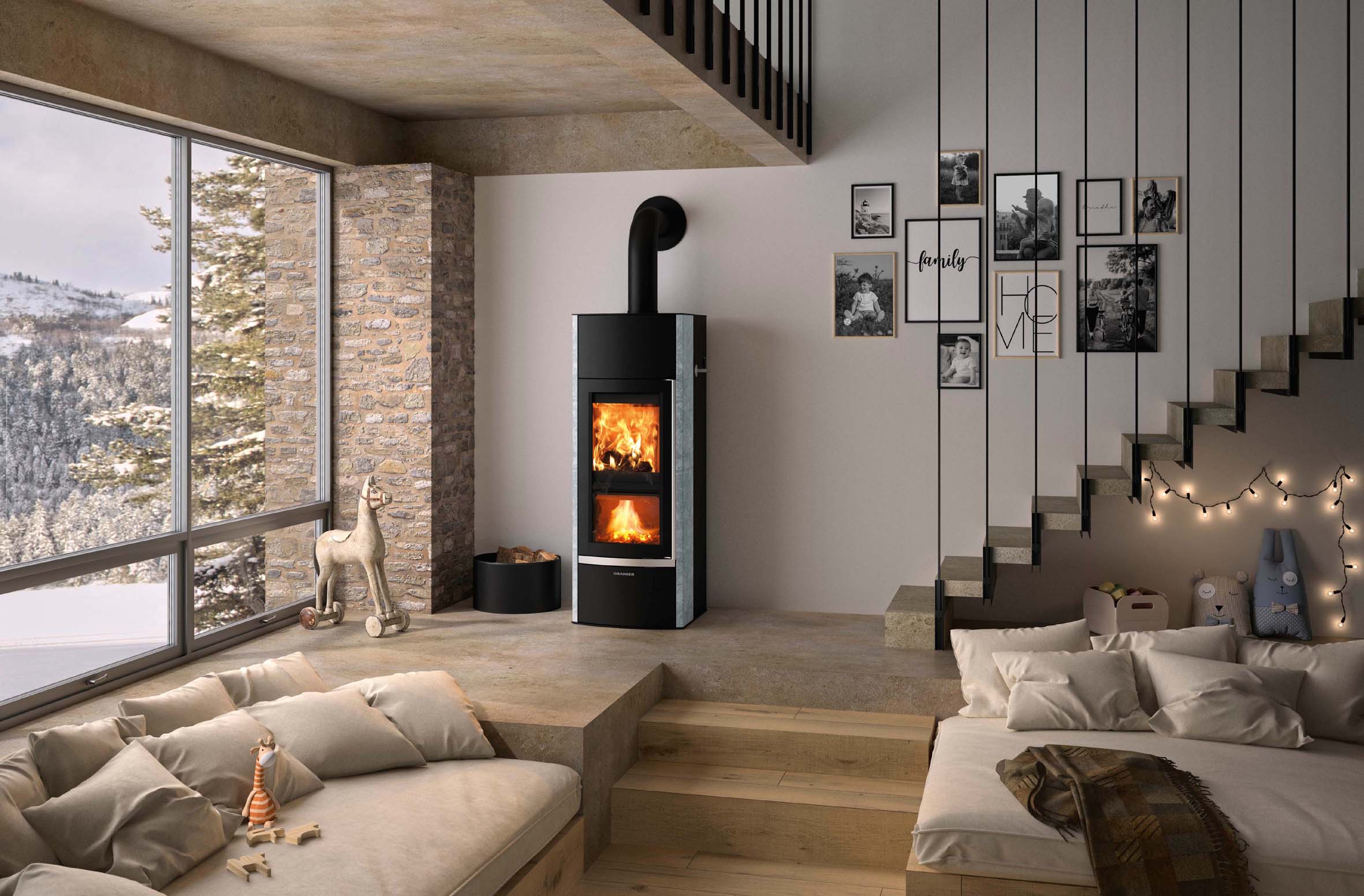 Für alle, die hohe Effizienz und ein beeindruckendes Feuererlebnis suchen, bietet ORANIER den Hektos Aqua. Sein doppeltes Flammenspiel – zwei Brennkammern übereinander – sorgt für ein außergewöhnliches Erscheinungsbild und ist Ausdruck ausgeklügelter Heiztechnik. Während oben dasHolz lodert, züngeln unten die Flammen der Holzgase – ein Zusammenspiel, das nicht nur begeistert, sondern den zentralen Heizkreislauf unterstützt. Denn als wasserführender Kaminofen mit integriertem Wärmetauscher speist er heißes Wasser in einen Pufferspeicher ein und wird so zum starken Baustein eines hybriden Energiesystems.