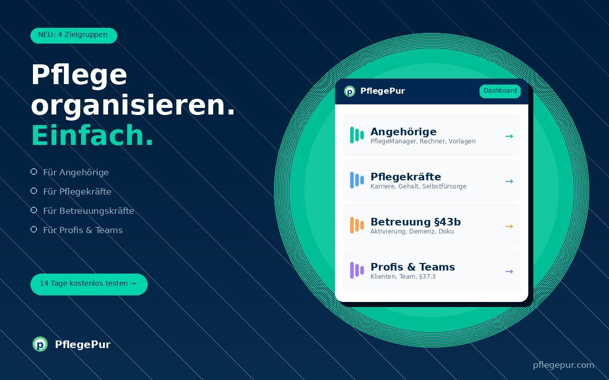 \“Mit dem Update sprechen wir erstmals auch die Menschen an, die beruflich pflegen und betreuen\“, erklärt Melanie Zick, Gründerin von PflegePur.\“Pflegekräfte leisten jeden Tag Enormes – und verdienen eigene Tools, die ihnen bei Karriere, Rechten und Selbstfürsorge helfen. Gleiches gilt für Betreuungskräfte, die Menschen im Alltag begleiten und aktivieren.\“
