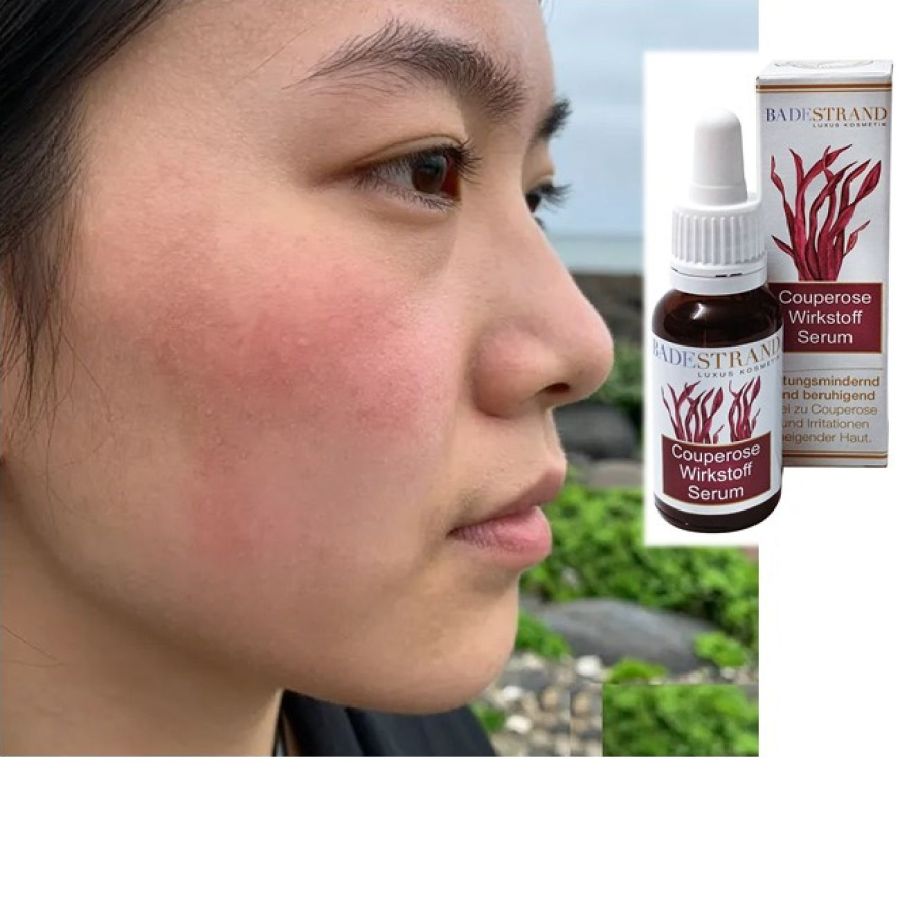 Die Firma Badestrand Kosmetik GmbH hat nach langer Entwicklungszeit ein Wirkstoffserum hergestellt, welches in aufwändigen, dermatologischen Untersuchungen bei längerfristiger Anwendungen einen signifikanten Rückgang der typischen Hautrötungen belegt. Ebenso ist die besonders gute Verträglichkeit bestätigt.