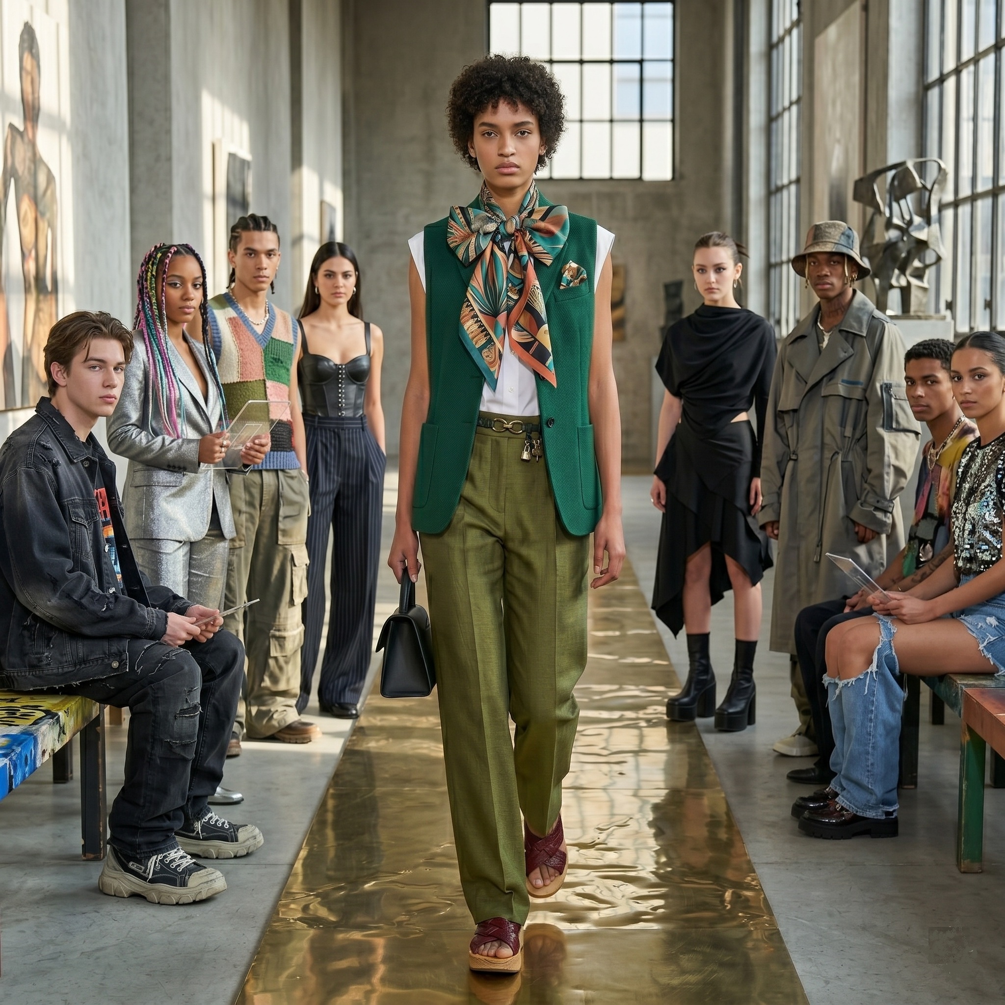 Doch der wahre Trend liegt nicht nur in der Farbe, sondern in der Inszenierung. Das Seidentuch wird 2026 nicht mehr nur\“ordentlich\“um den Hals geknotet. Es wird als Bandana im Haar getragen, locker um die Hüfte geschlungen oder als doppellagiges Bandeau zum schlichten Blazer kombiniert.