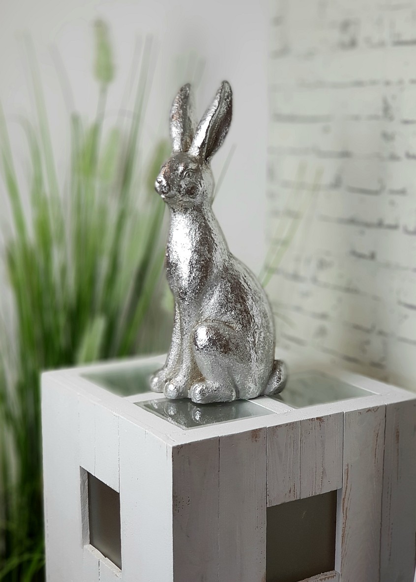 Silberner XXL-Hase mit strukturierter Oberfläche setzt stilvollen Akzent