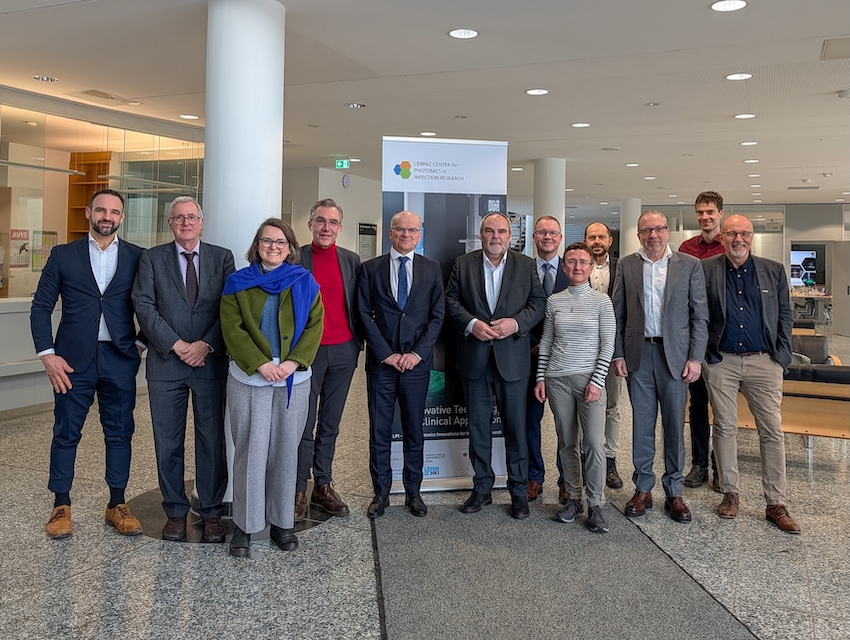Die LPI-Geschäftsführung erläuterte neben der strategischen Ausrichtung des Zentrums auch dessen Bedeutung für Thüringen, Deutschland und Europa. Staatssekretär Prof. Dr. Teichert betonte die Relevanz des Vorhabens für den Wissenschaftsstandort Thüringen:\“Das LPI verbindet wissenschaftliche Exzellenz mit klarer Umsetzungsorientierung. Damit leistet es einen wichtigen Beitrag zur Profilierung Thüringens im Bereich der Gesundheitsforschung.\“Die Vertreter des BMFTR und des TMBWK unterstützen das Zentrum auf dem Weg der weiteren Etablierung, der auch den Neubau eines Laborgebäudes auf dem Gelände des UKJ vorsieht.
