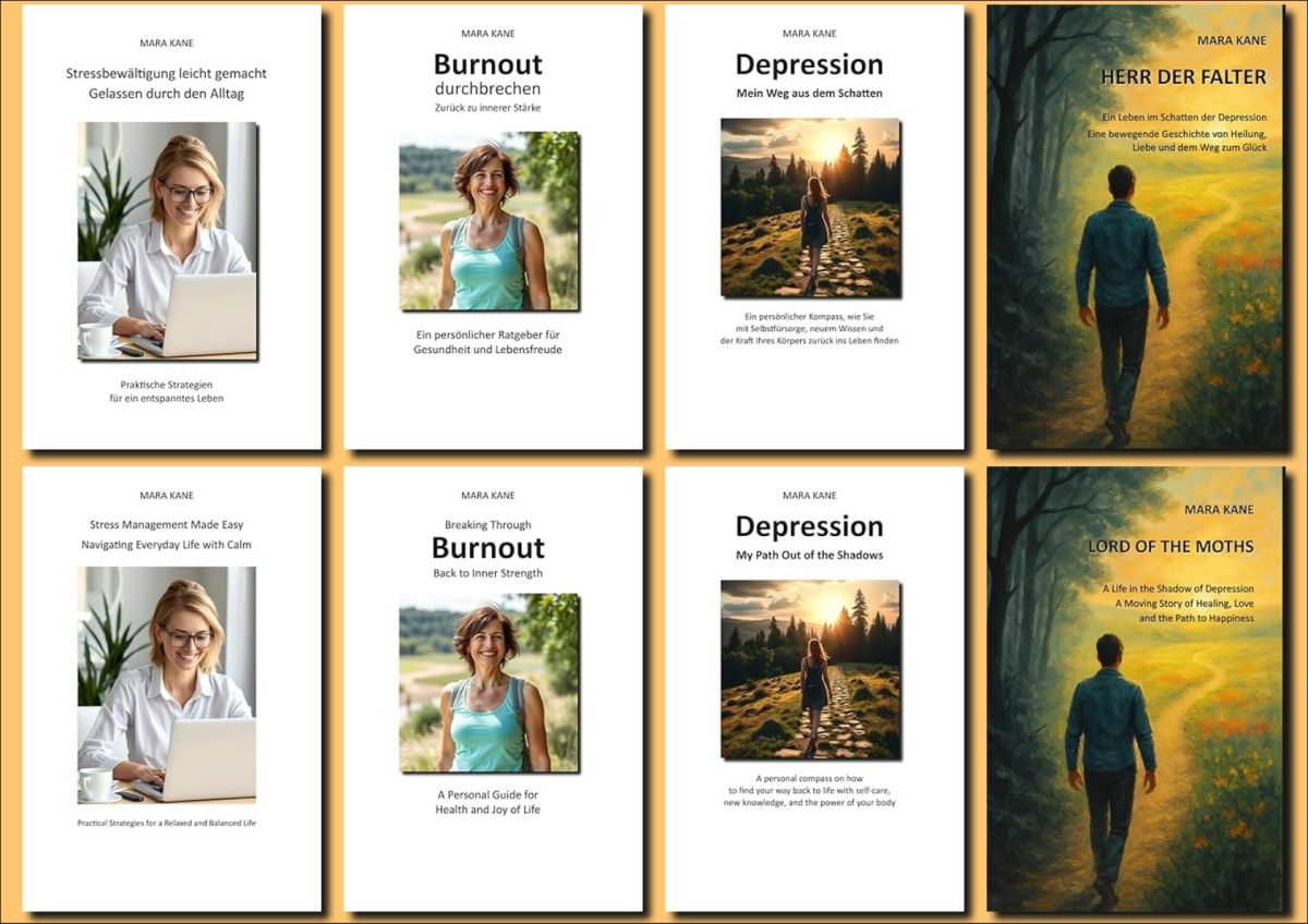 Vier außergewöhnliche Titel von MARA KANE kombinieren persönliche Erfahrungen, lebensnahe Strategien und tiefgründige Einblicke in die Welt seelischer Herausforderungen. Die Bücher richten sich an alle, die sich nach mehr Balance, innerer Ruhe und Stärke sehnen – und an all jene, die anderen dabei helfen wollen: