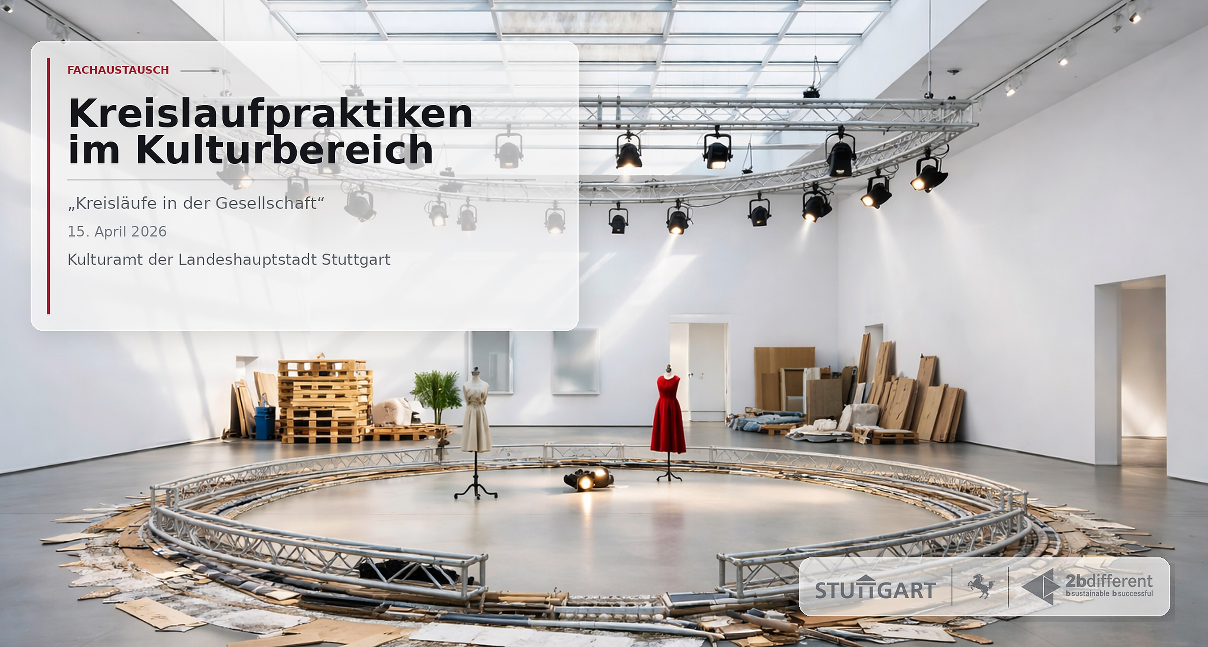 Geplant sind unter anderem ein Beitrag von Florian Sorg, Kreislaufwirtschaftsbeauftragter der Stadt Stuttgart, zur städtischen Kreislaufwirtschaftsstrategie sowie Praxisimpulse von Markus Bauer und Dominique Dinies von der UTA Architekten&Stadtplaner zur lokalen zirkulären Architekturszene und ihren Berührungspunkten mit dem Kulturbereich. Optional ist zudem ein Exkurs zum IBA-Gelände mit Transferspaziergang vorgesehen.