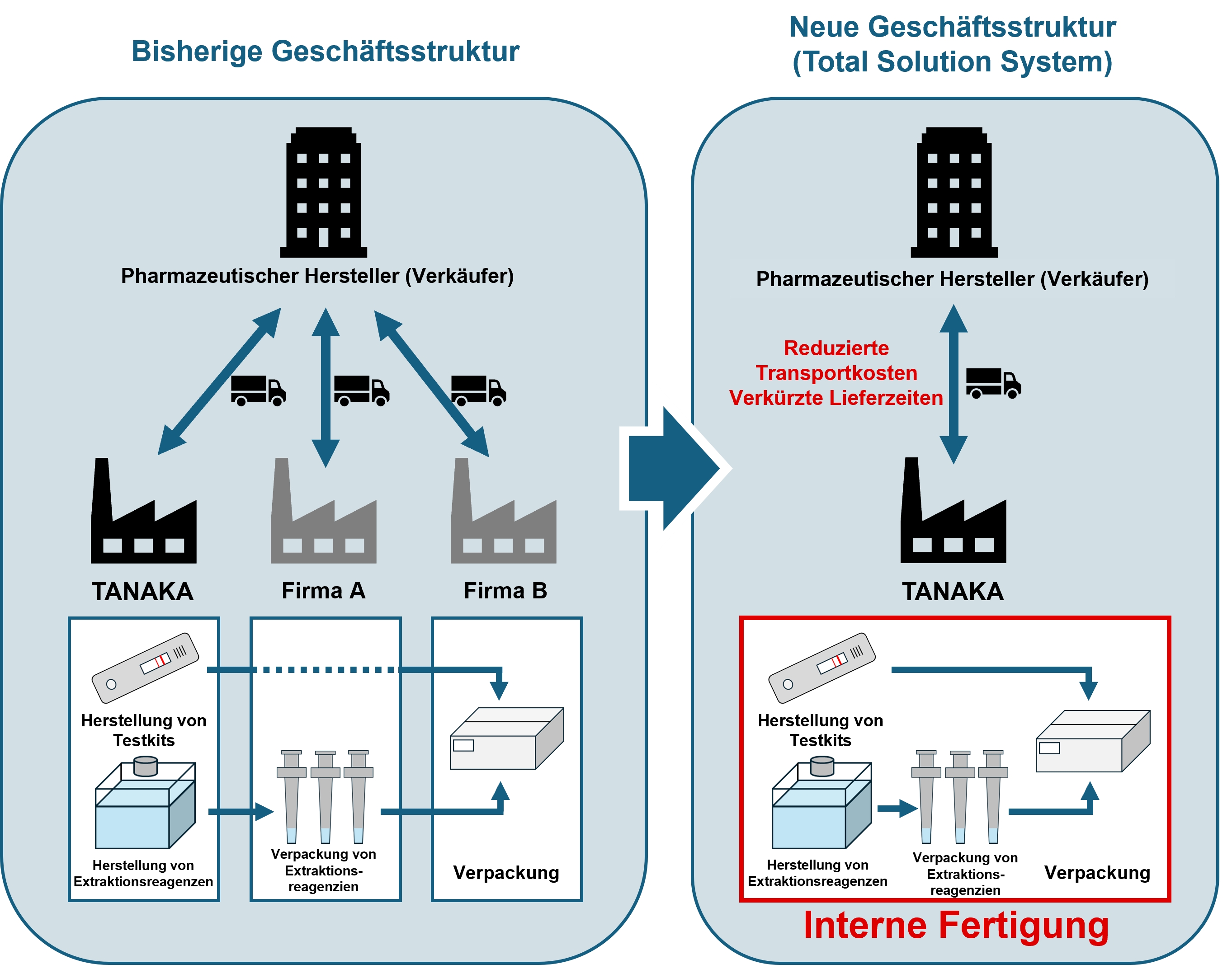 Bislang war TANAKA in erster Linie für die Entwicklung und Herstellung von Testkits bis zur Massenproduktion von Extraktionsreagenzien spezialisiert. Mit der nun erfolgten Einrichtung dedizierter Produktionslinien für die Abfüllung und Verpackung von Extraktionsreagenzien ist TANAKA erstmals in der Lage, alle Produktionsschritte vollständig intern durchzuführen. Dadurch kann TANAKA Kosten und Zeit für externe Outsourcing- und Transportleistungen reduzieren und hochwertige Produkte schneller an Kunden ausliefern.