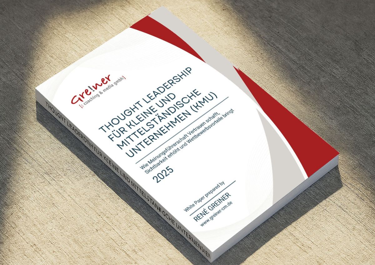 Das neue Whitepaper\“Thought Leadership 2025\“von Business Coach und Medienprofi René Greiner zeigt, wie Unternehmerinnen und Unternehmer mit Haltung, klarer Sprache und echter Substanz Vertrauen aufbauen – und warum das gerade im Mittelstand kein Luxus, sondern Überlebensstrategie ist.