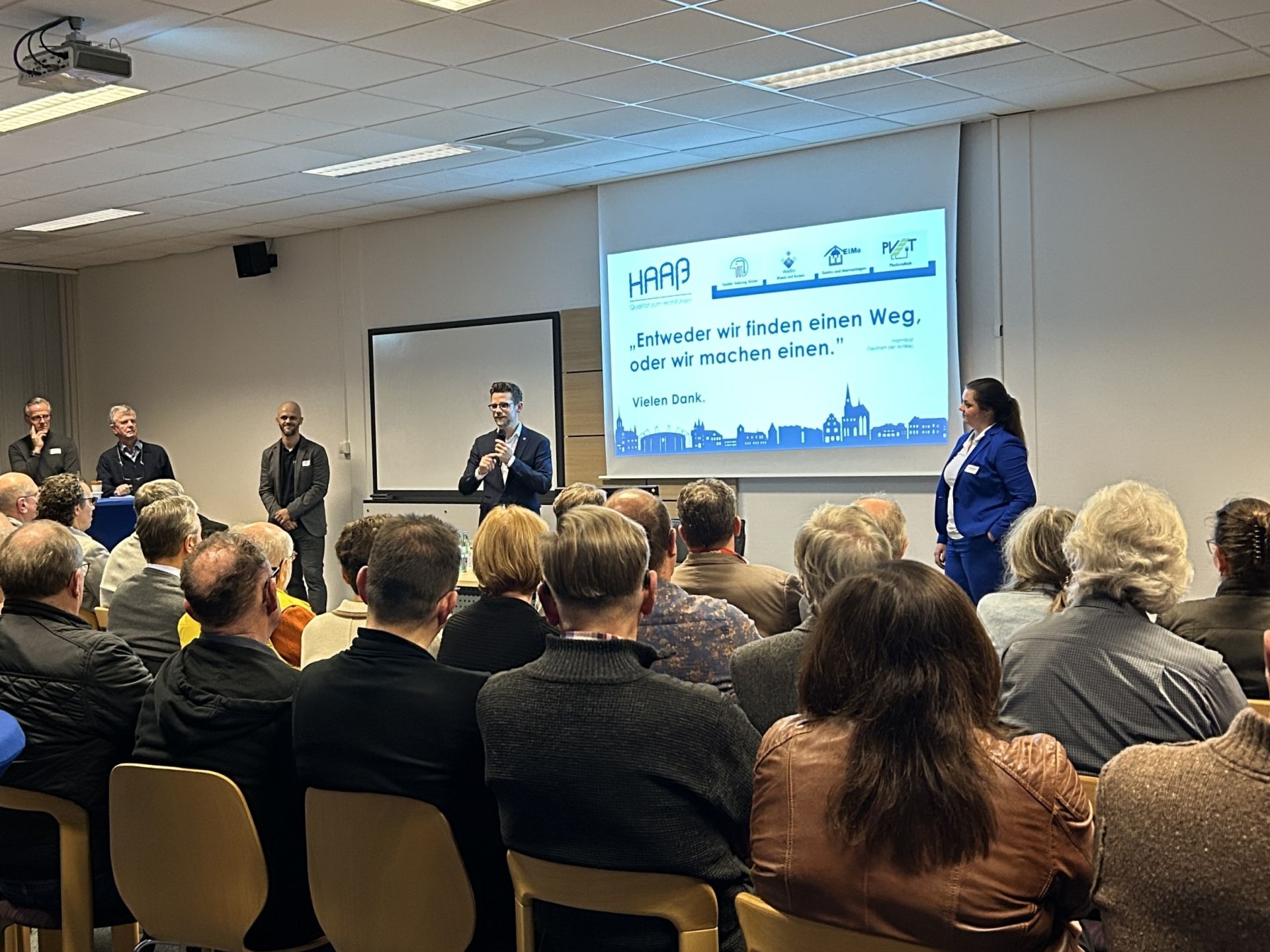 Mitüber 120 Teilnehmenden war die Fachveranstaltung „Wärmewende konkret erleben – Technik verstehen, Chancen nutzen“ bei dem in Mönchengladbach ansässigen Unternehmen Haaß GmbH&Co. KG ein voller Erfolg. Eigentümer:innen, Hausverwalter:innen, Planer:innen, Architekt:innen, Vertreter:innen der Stadt sowie Fachleute aus Handwerk und Industrie wurden in aufschluss-reichen Vorträgen über zentrale Fragen der Energiewende im Gebäudebereich informiert.