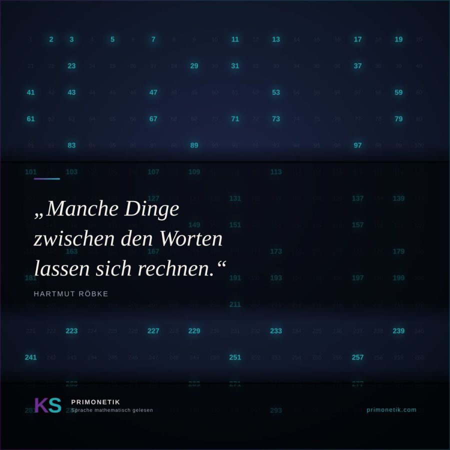 Röbkes Antwort ist ein eigener methodischer Ansatz, den er Primonetik nennt. Primonetik untersucht gesprochene und geschriebene Sprache auf ihre taktische Struktur\“konkret: auf die Positionen bestimmter Elemente an Primzahl-Stellen im Satzverlauf. Daraus entsteht ein messbarer Index, der Resonanz-Kohärenz-Index (RKI), der sprachliche Kohärenz und Dissonanz quantifizierbar macht, ohne sie auf bloße Wortwahl zu reduzieren.